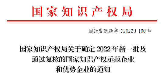 近日,国家知识产权局发布《国家知识产权局关于确定2022年新一批及通过复核的国家知识产权示范企业和优势企业的通知》,海南G22恒峰药业集团股份有限公司入选2022年新确定的国家知识产权示范企业名单,成为482家新一批国家知识产权示范企业之一。这标志着G22恒峰药业创新研发实力和知识产权管理成果进一步得到了国家有关部门认可。